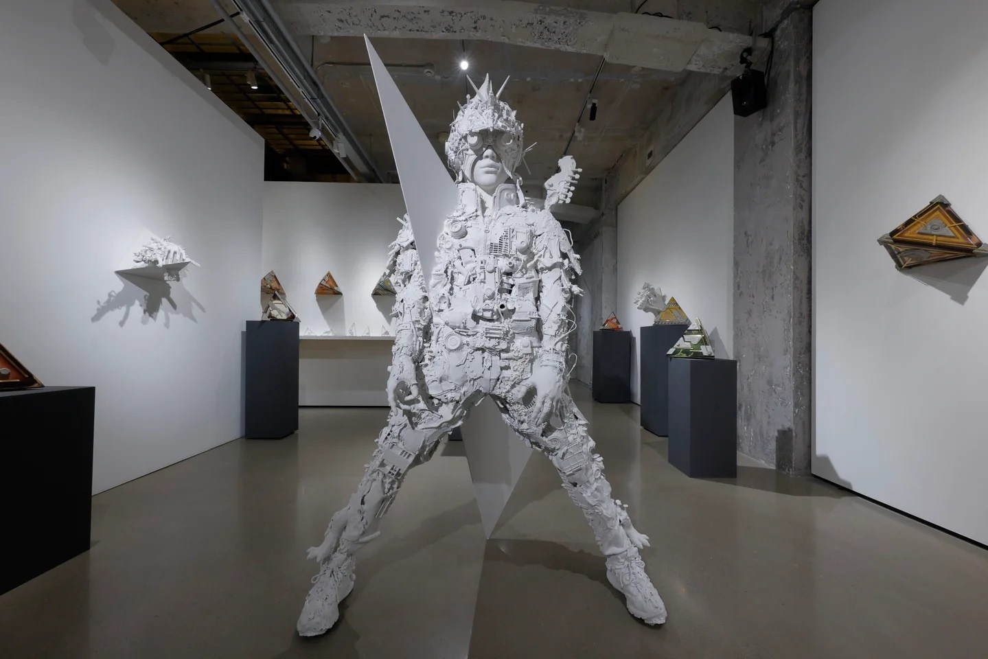 大野修は、音楽カルチャーの視点を取り入れたアプローチを基軸に、内面から湧き上がる「衝動」を創作の原動力とし、プラスチックや使えなくなった楽器など、日常にあふれる様々な人工的な素材を組み合わせて造形する「ブリコラージュ」と呼ばれる手法を用いて作品を制作するアーティスト。